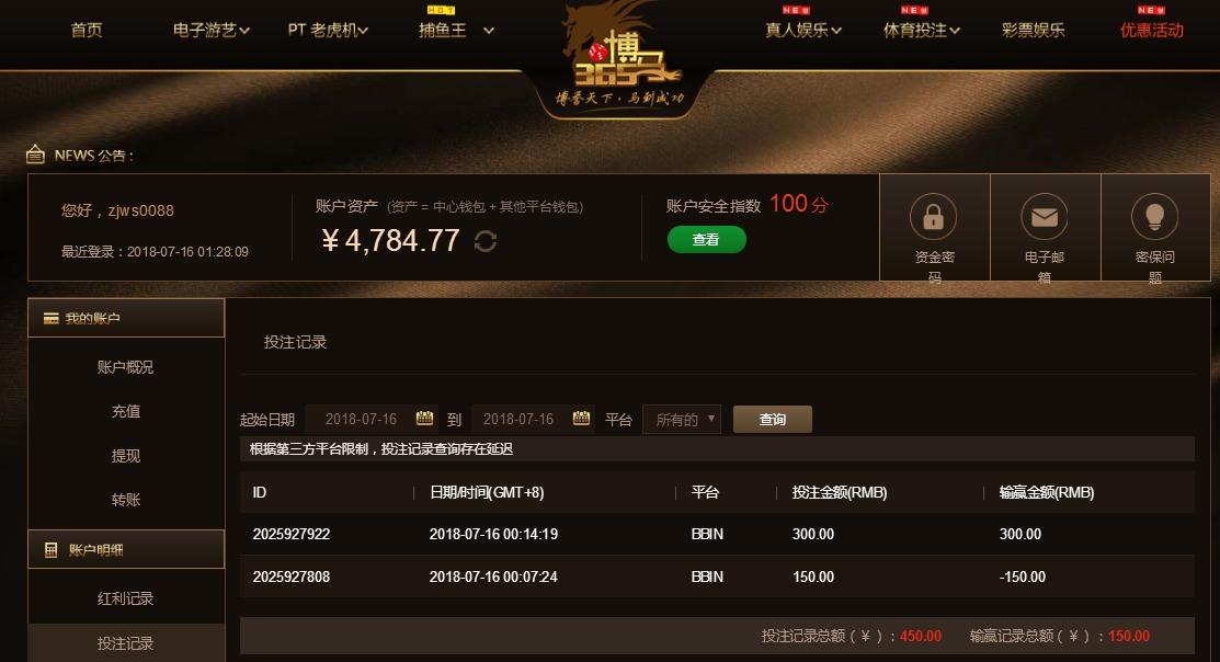 [|赢单奖励] 7月16日博马赢利100 |