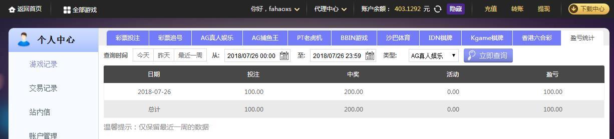 [|赢单奖励] 7月26日摩臣AG赢利100 |