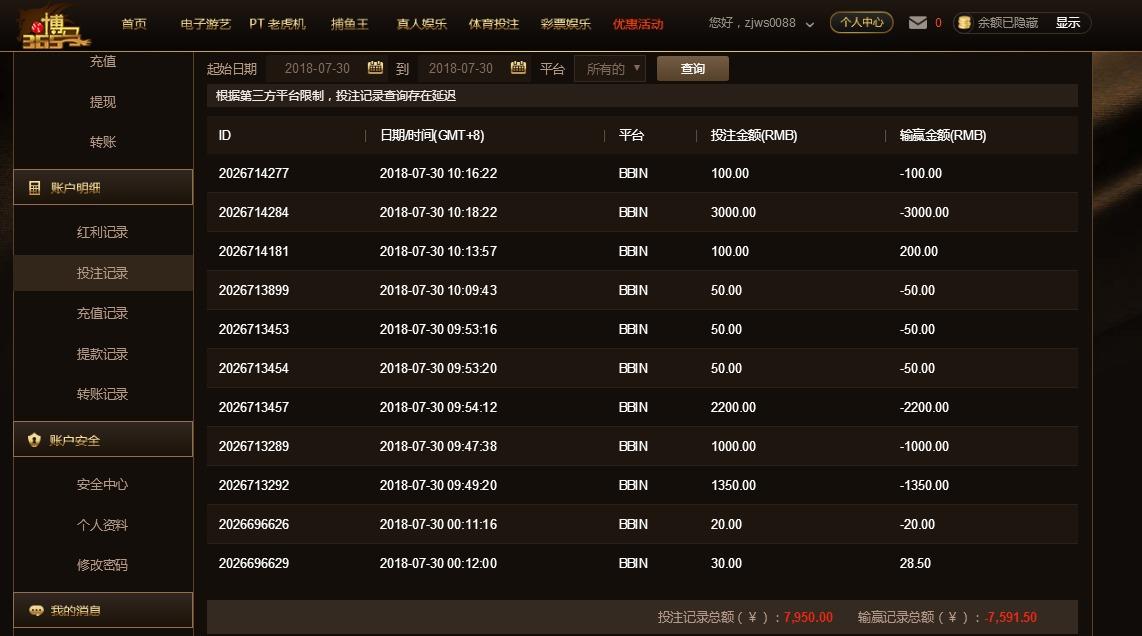 [|输单补偿] 7月30日博马亏损7592 |