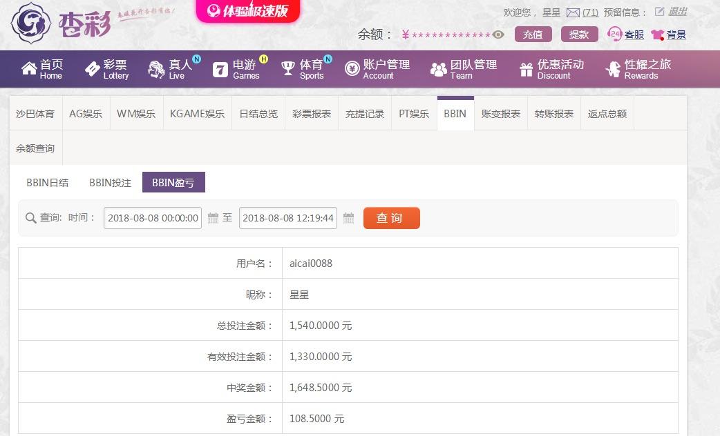 [|赢单奖励] 8月8日杏彩盈利100元 |