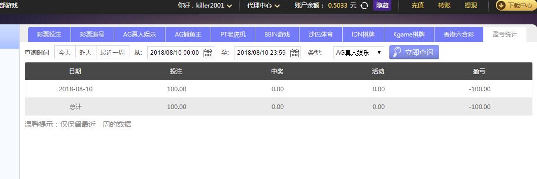[|输单补偿] 8月10日摩臣亏损100 |