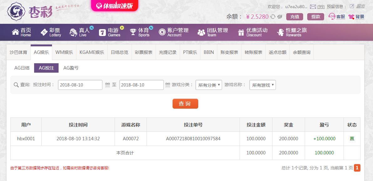 [|赢单奖励] 8月10日杏彩盈利100 |