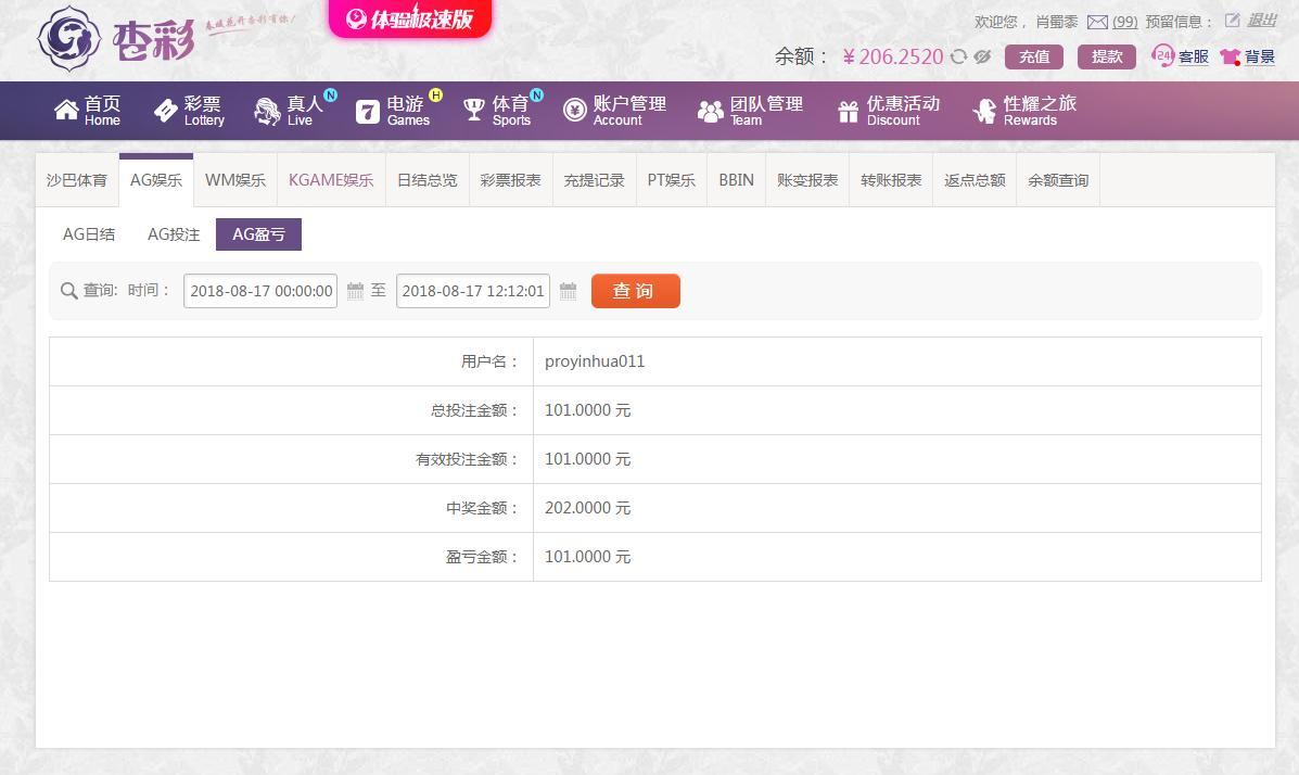 [|赢单奖励] 8月17日杏彩盈利101元 |