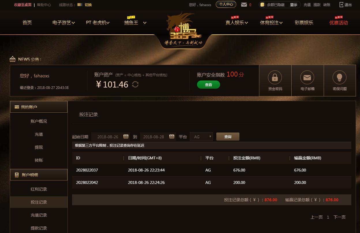 [|赢单奖励] 8月28日博马AG赢利876 |