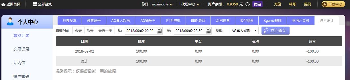 [|输单补偿] 9月2日摩臣亏损100元 |