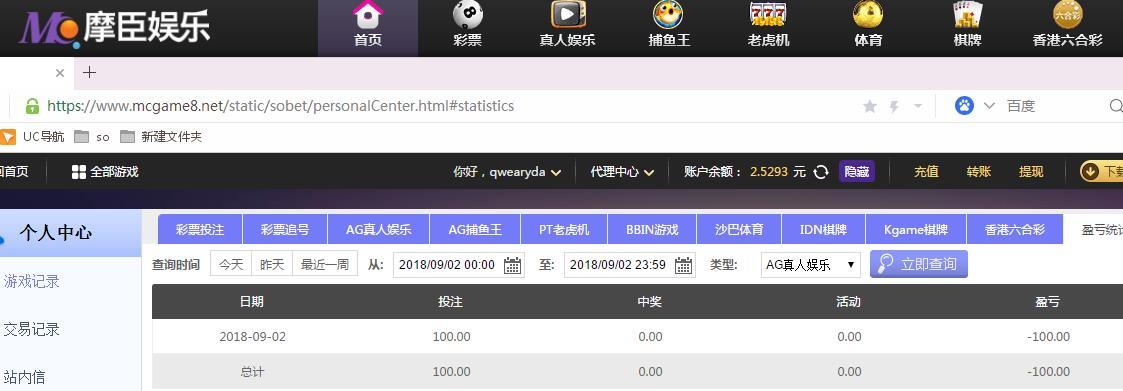 [|输单补偿] 9月02日摩臣亏损100元 |