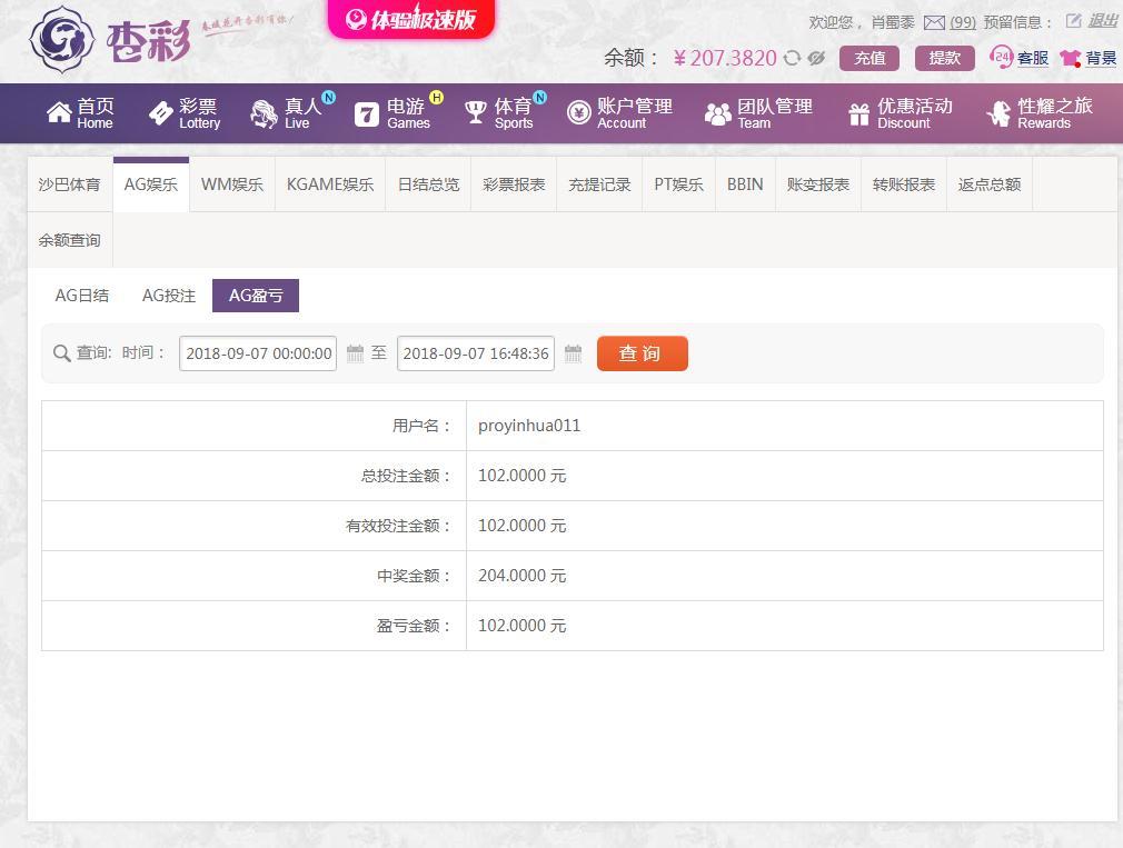 [|赢单奖励] 9月7日杏彩盈利102元 |