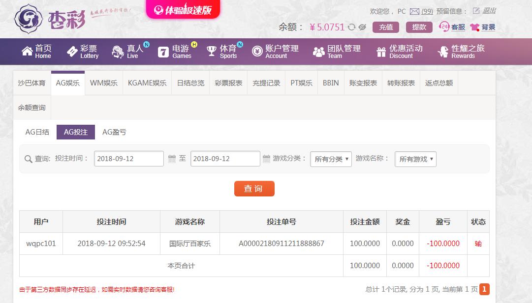 [|输单补偿] 9月12日杏彩亏损100 |