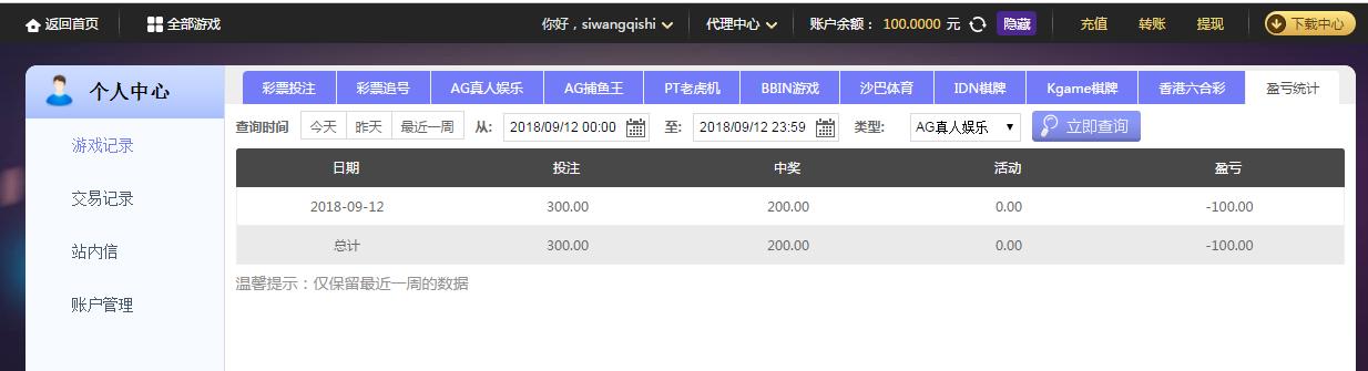 [|输单补偿] 9月12日摩臣亏损100 |