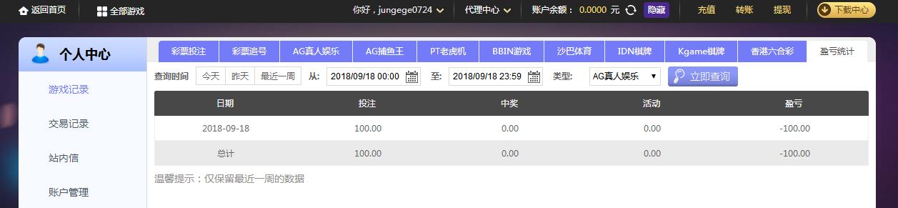[|输单补偿] 9月18日摩臣亏损100元 |