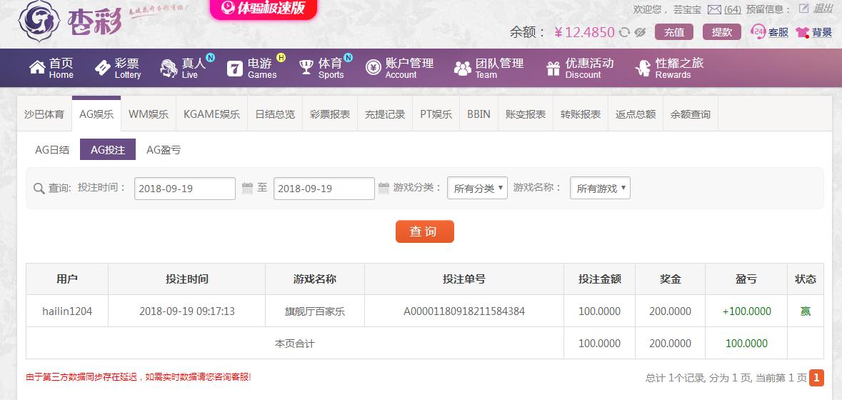 [|赢单奖励] 9月19日杏彩盈利100元 |