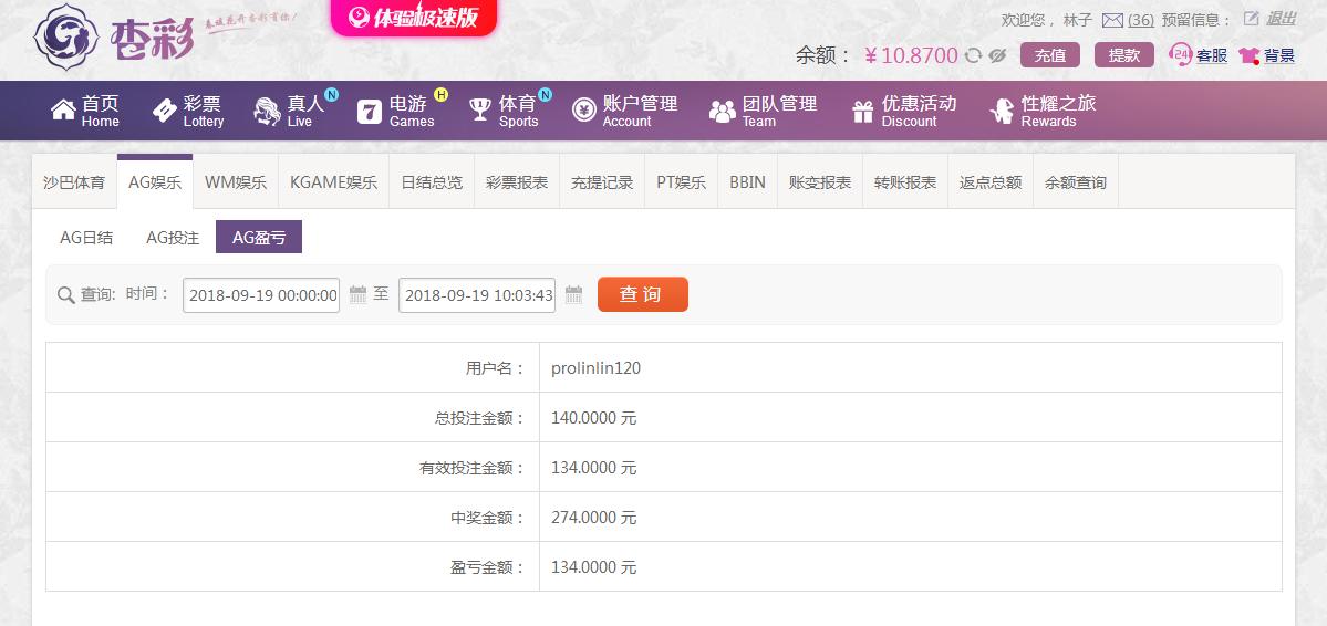 [|赢单奖励] 9月19日杏彩盈利134元 |