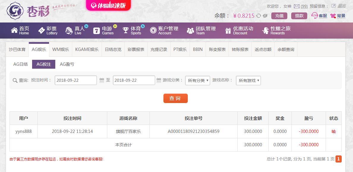 [|输单补偿] 9月22日杏彩亏损300 |
