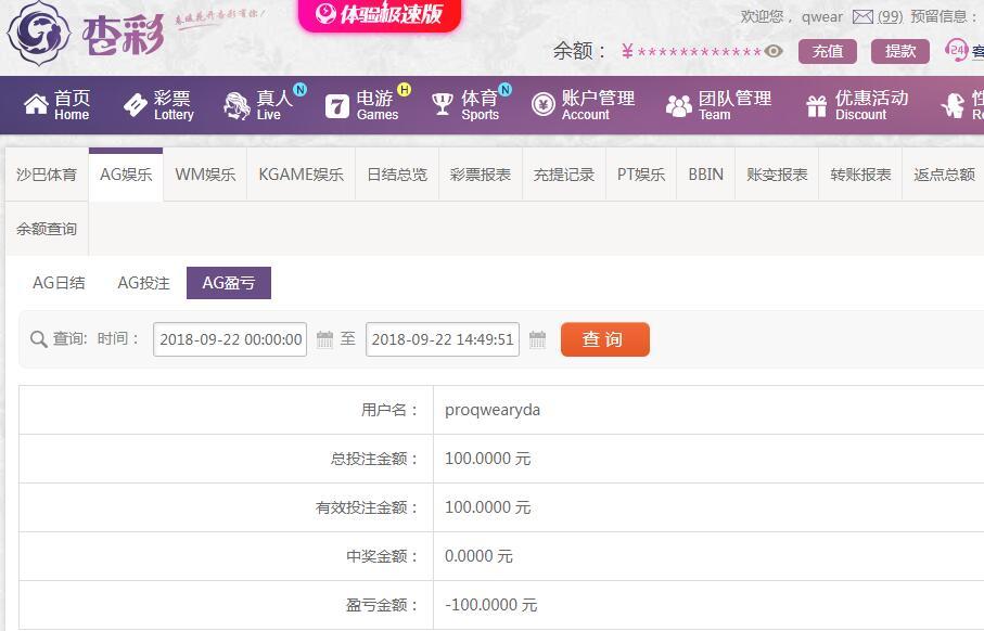 [|输单补偿] 9月22日杏彩亏损100元 |