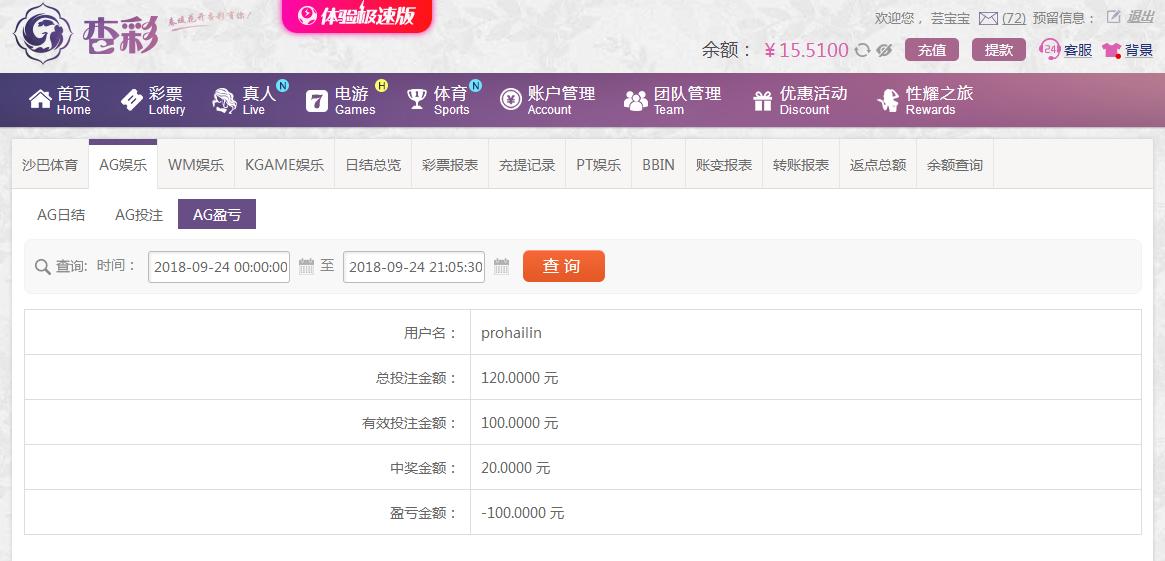 [|输单补偿] 9月24日杏彩亏损100 |