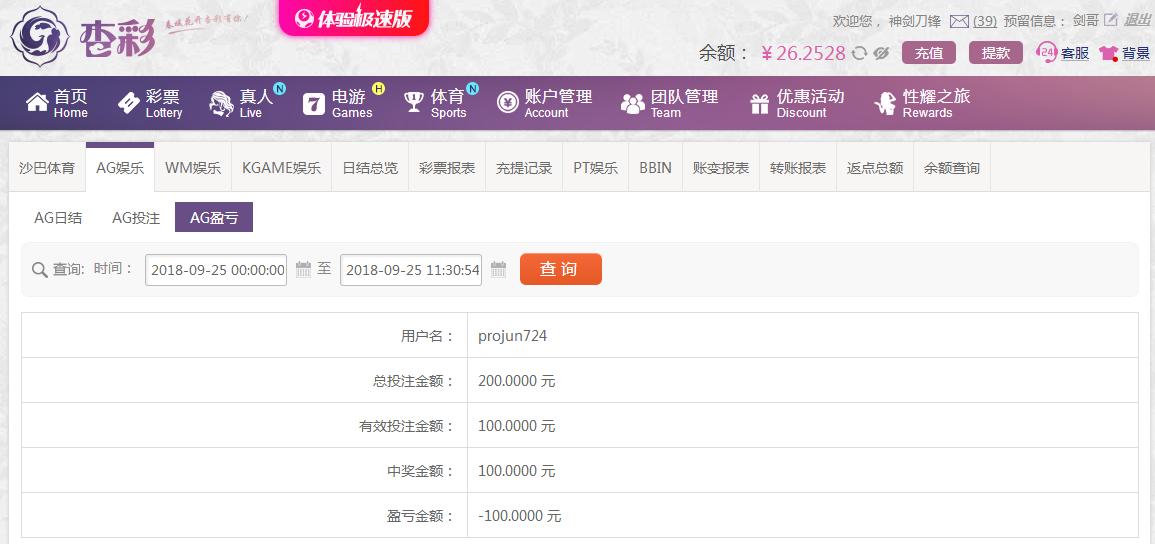 [|输单补偿] 9月25日杏彩亏损100元 |