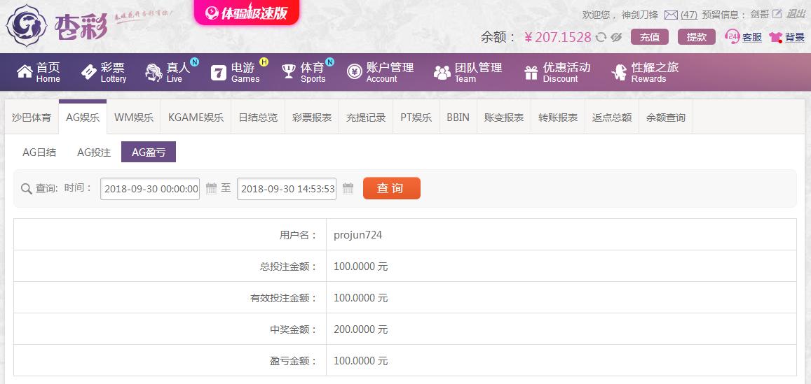 [|赢单奖励] 9月30日杏彩盈利100元 |