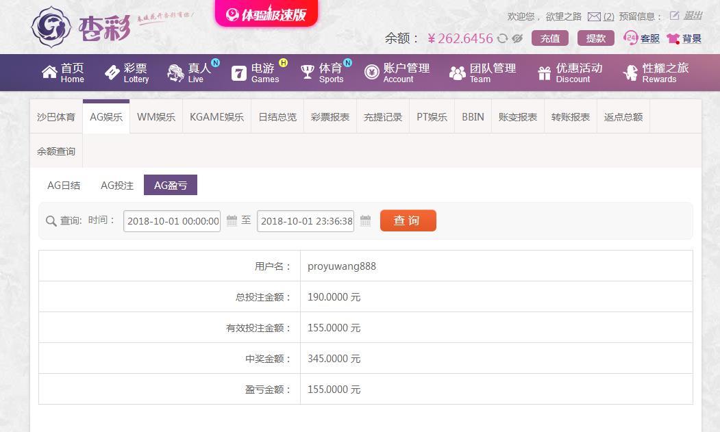 [|赢单奖励] 10月1日杏彩平台盈利155 |