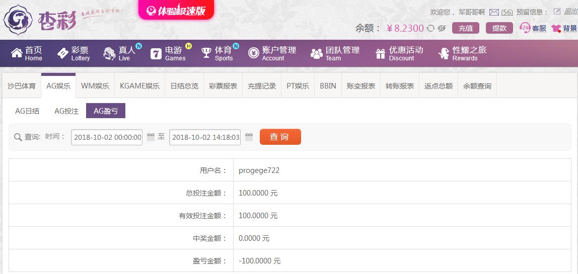 [|输单补偿] 10月2日杏彩亏损100 |