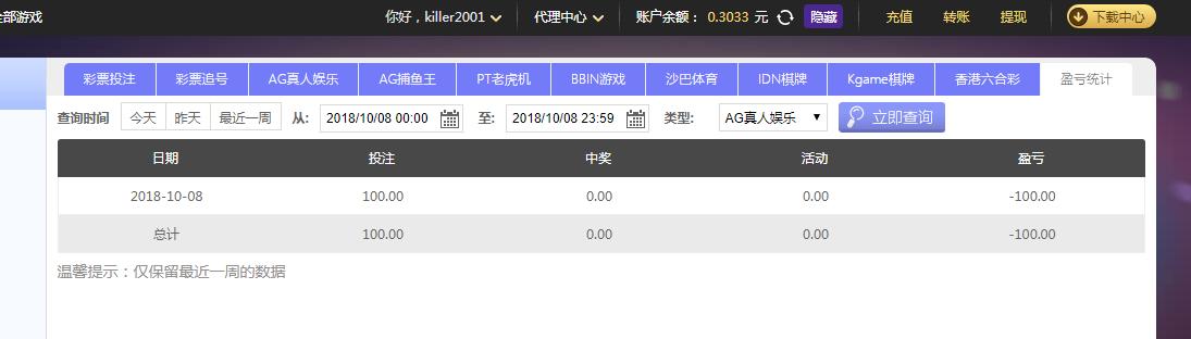 [|输单补偿] 10月8日摩臣亏损100 |