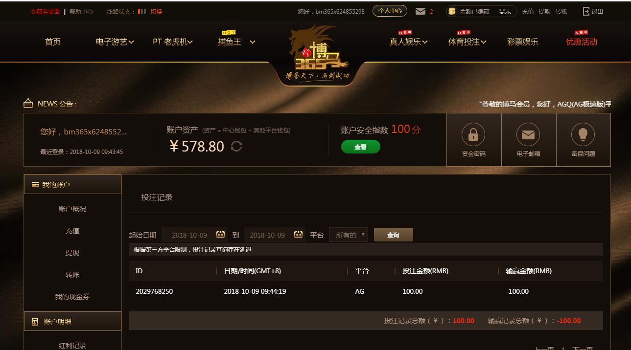 [|输单补偿] 10月9日博马Ag亏损100 |