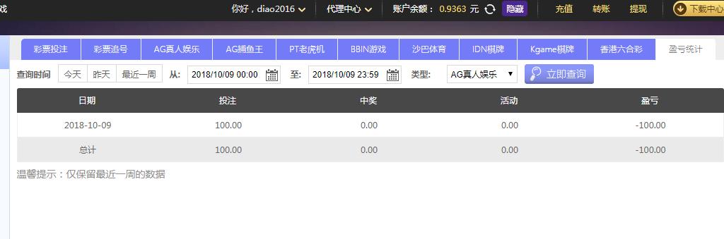 [|输单补偿] 10月9日摩臣亏损100 |