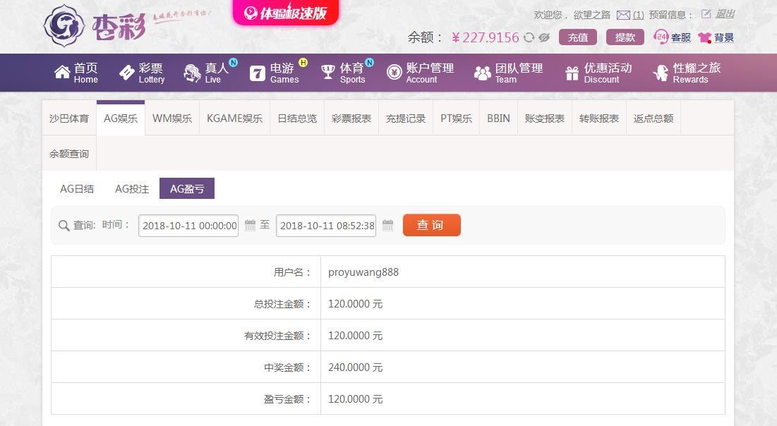 [|赢单奖励] 10月11日杏彩平台盈利120元 |