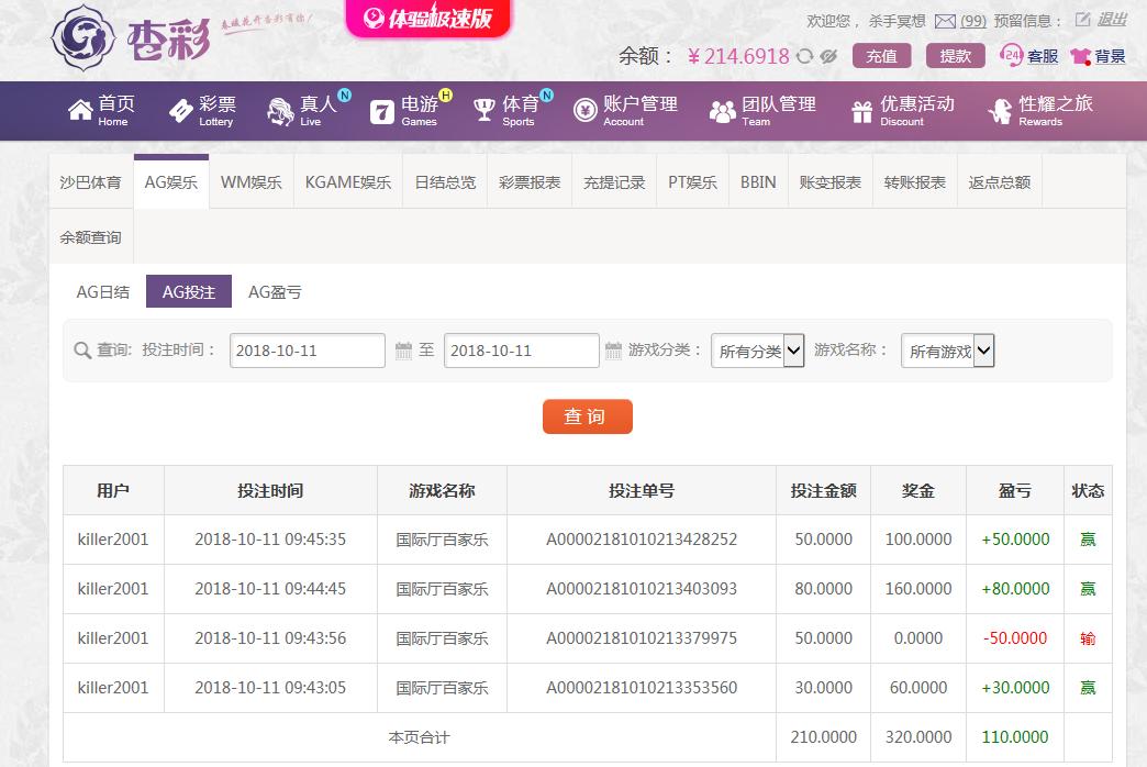 [|赢单奖励] 10月11日杏彩盈利110 |