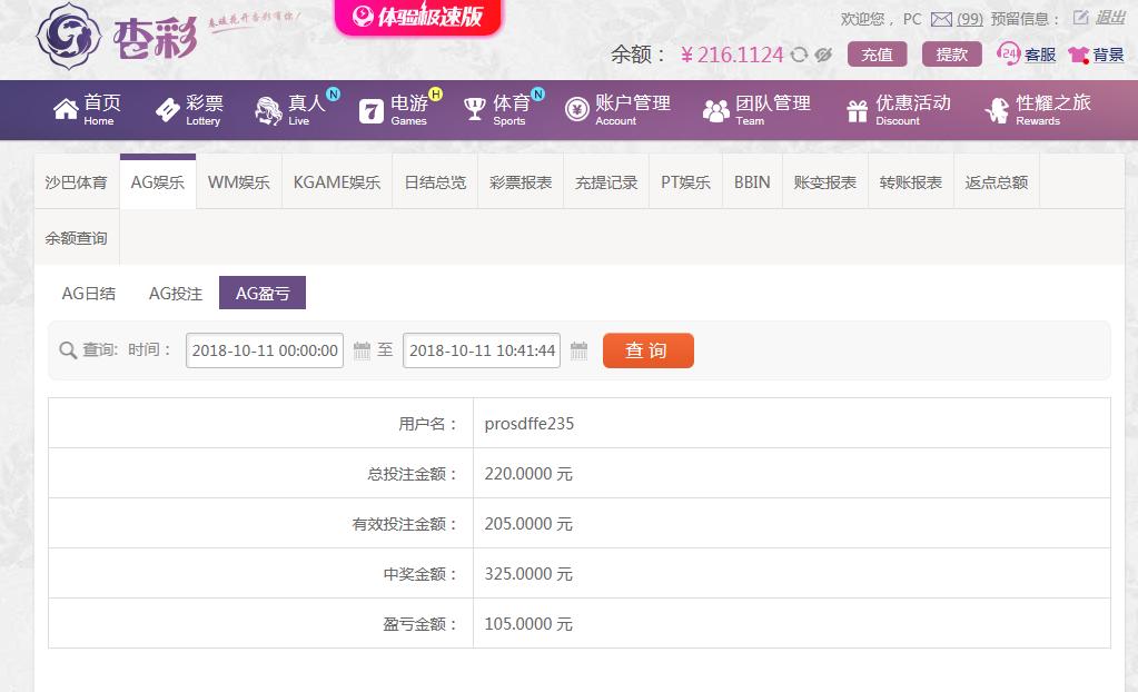[|赢单奖励] 10月11日杏彩盈利105 |