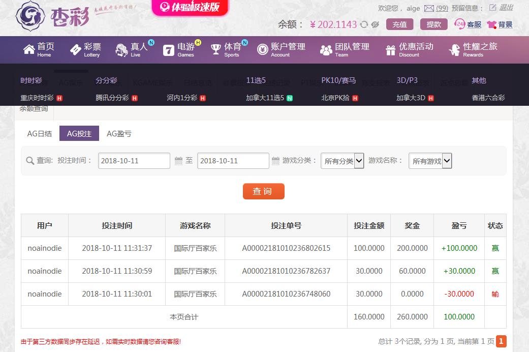 [|赢单奖励] 10月11日杏彩盈利100 |