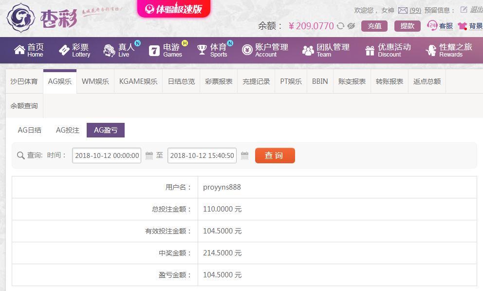 [|赢单奖励] 10月12日杏彩盈利104 |