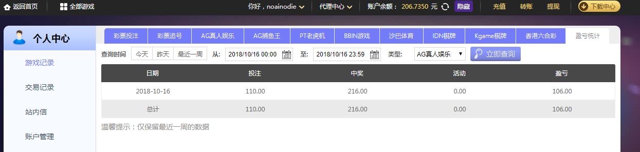 [|赢单奖励] 10月16日摩臣盈利106元 |