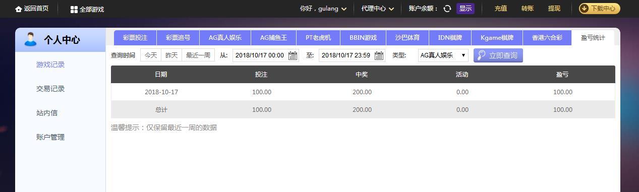[|赢单奖励] 10月17日摩臣AG平台盈利100元 |