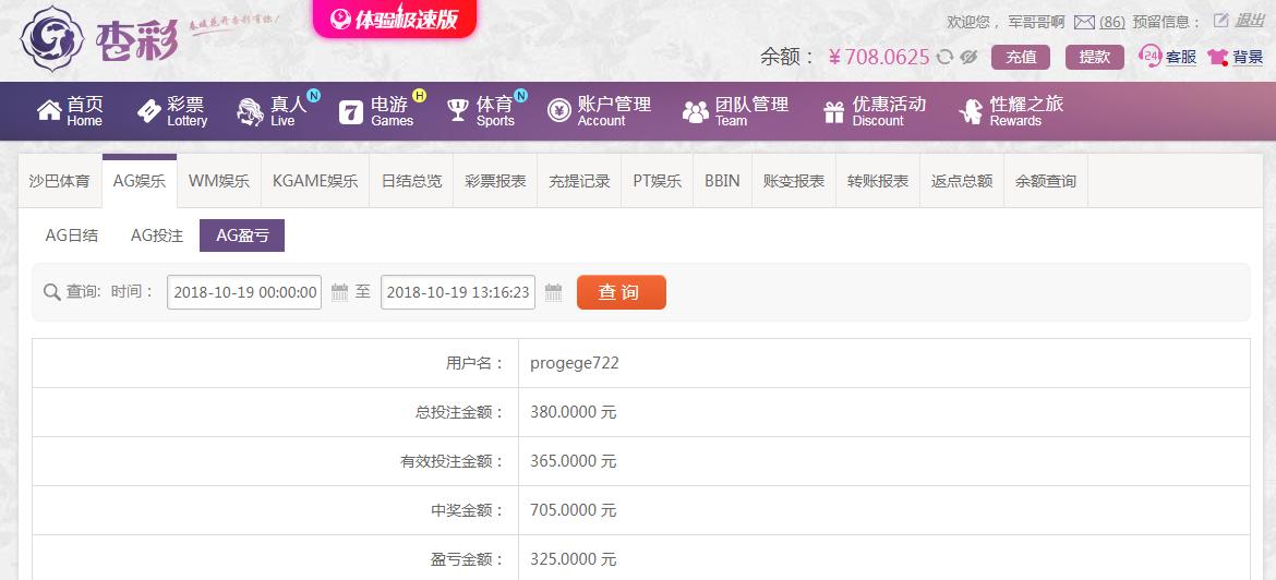 [|赢单奖励] 10月19日杏彩盈利325元 |
