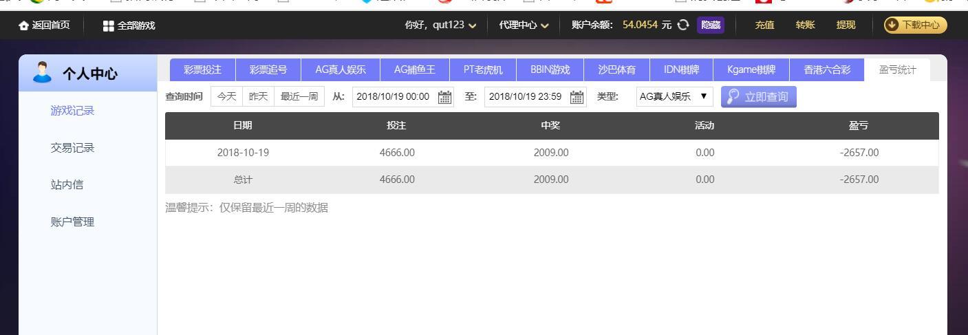 [|输单补偿] 10月19日摩臣亏损2657 |