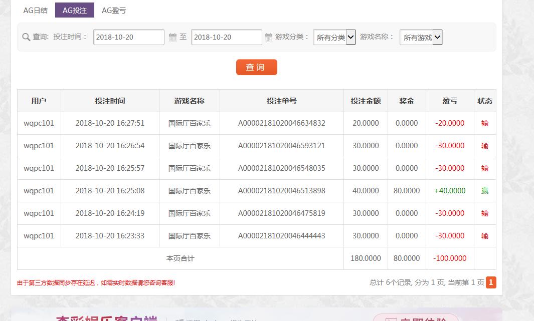 [|输单补偿] 10月20日杏彩亏损100 |
