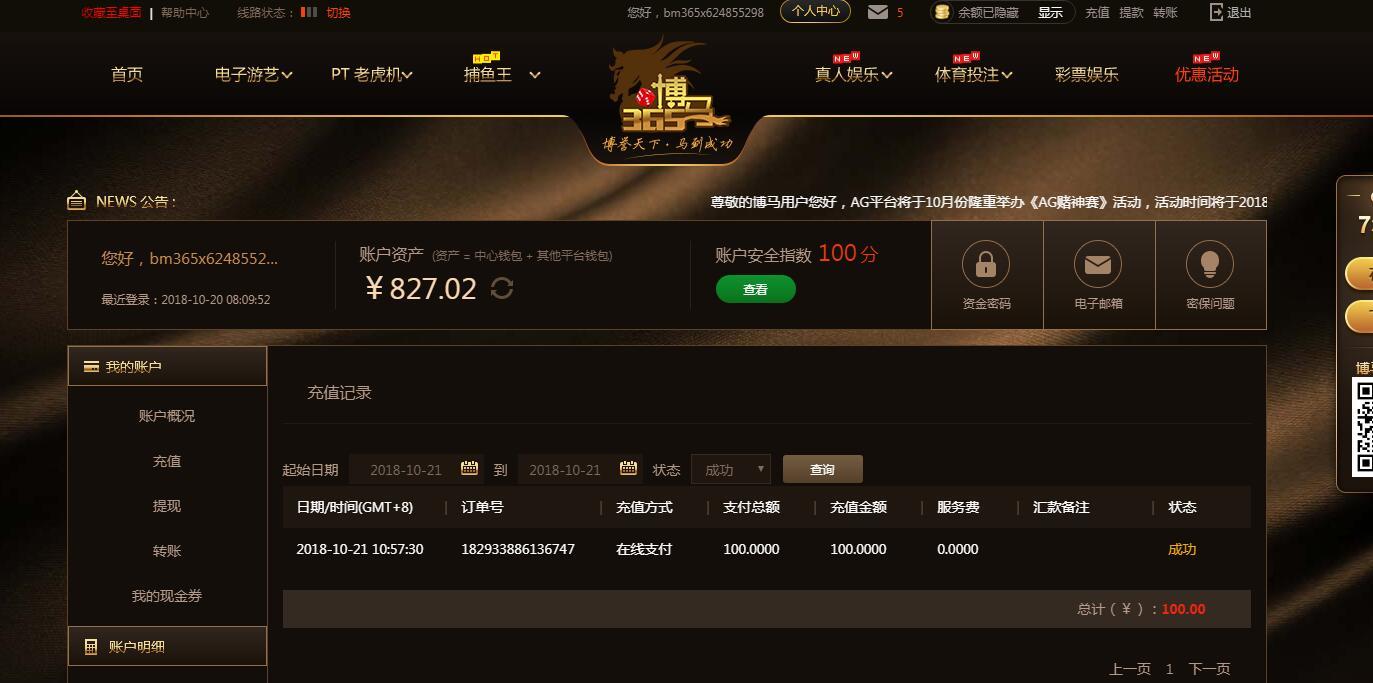[|赢单奖励] 10月21日博马AG盈利130 |