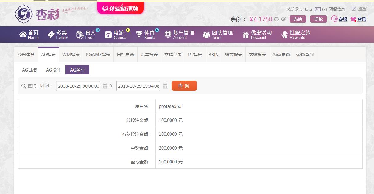 [|赢单奖励] 10月29日杏彩AG盈利100 |