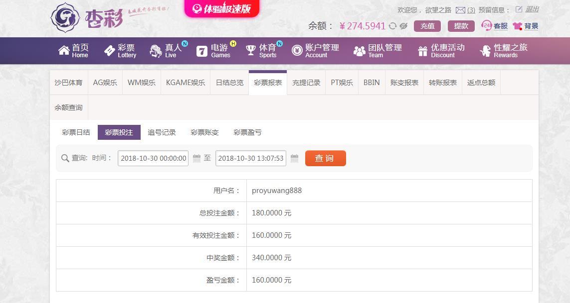 [|赢单奖励] 10月30日杏彩平台盈利160元 |