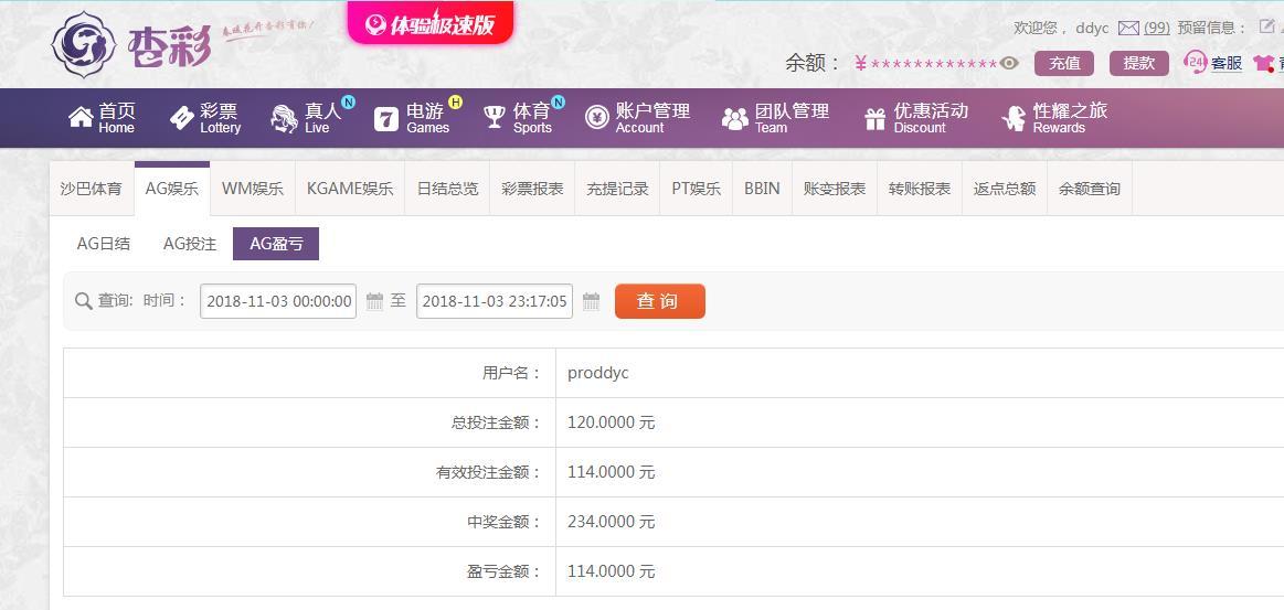 [|赢单奖励] 11月3日杏彩AG盈利114 |