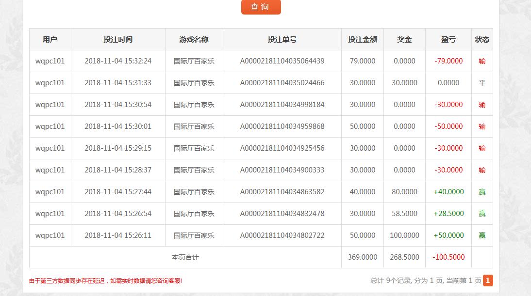 [|输单补偿] 11月4日杏彩AG亏损100 |