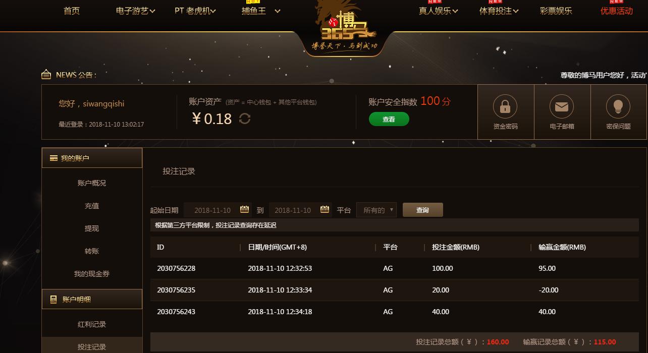 [|赢单奖励] 11月10日博马盈利115 |
