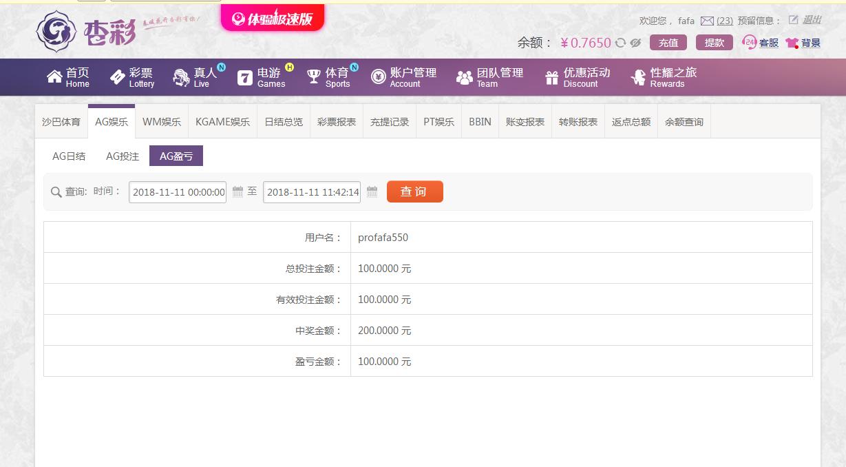 [|赢单奖励] 11月11日杏彩AG盈利100 |