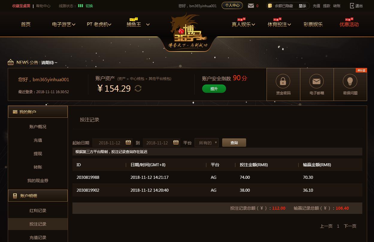 [|赢单奖励] 11月12日博马盈利106元 |