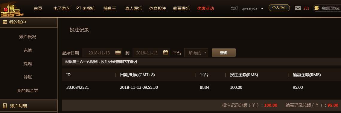 [|赢单奖励] 11月13日博马盈利100元 |