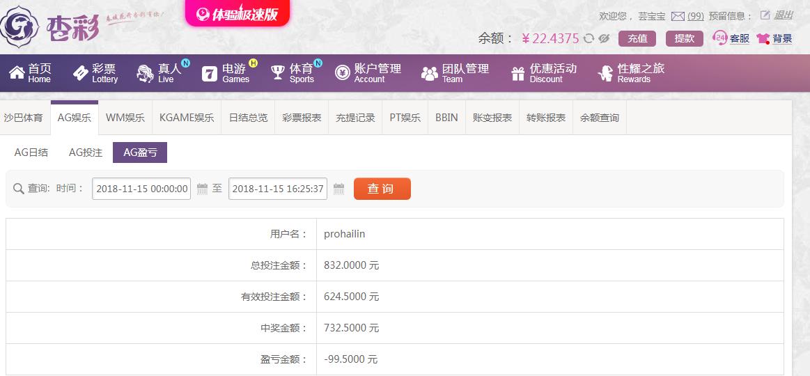 [|输单补偿] 11月15日杏彩亏损100元 |