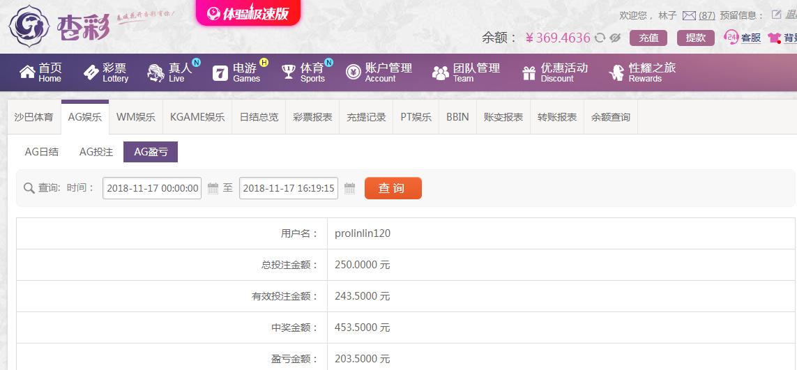 [|赢单奖励] 11月17杏彩ag平台投注赢203 |