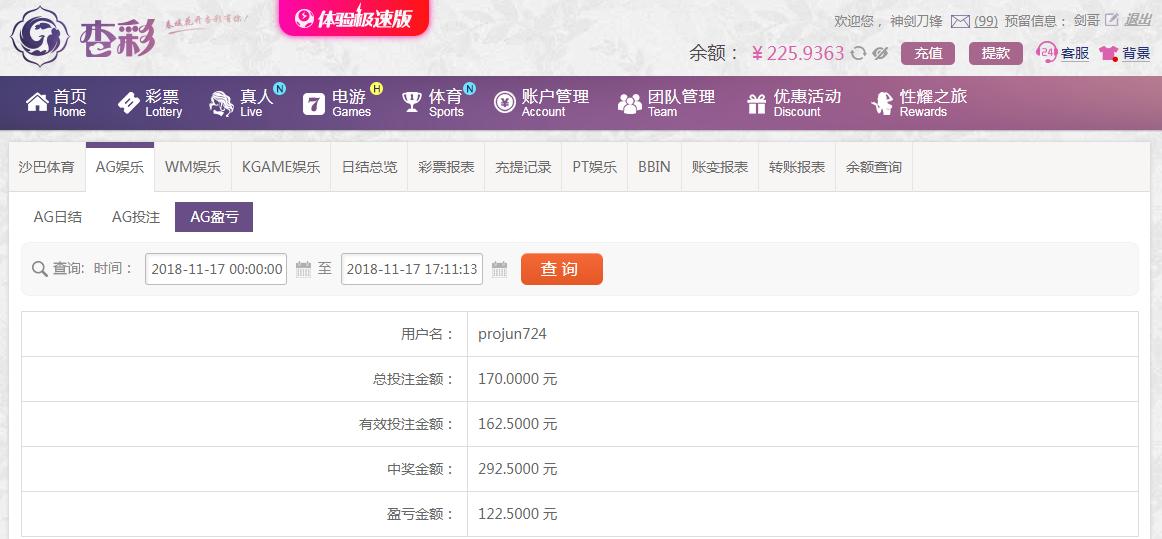 [|赢单奖励] 11月17杏彩ag平台投注赢122 |