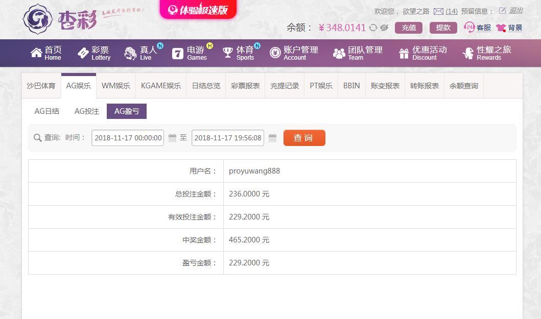 [|赢单奖励] 11月17日杏彩平台盈利229元 |