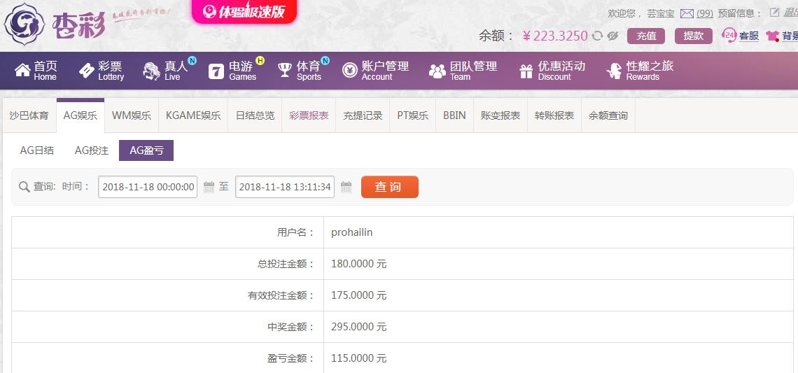 [|赢单奖励] 11月18日杏彩赢115元 |